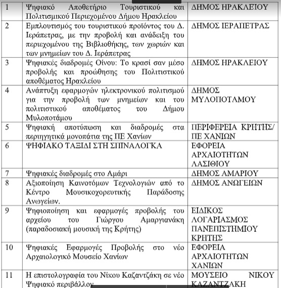 -η εφαρμογή ψηφιακών υπηρεσιών που ενισχύουν την τοπική οικονομία, όπως η διαχείριση και προβολή της πολιτιστικής κληρονομιάς (e-culture) και του τουριστικού αποθέματος της Κρήτης (e-tourism) και
