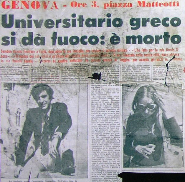 Στις 19 Σεπτεμβρίου του 1970, ένας έλληνας φοιτητής της Γένοβας, ο Κώστας Γεωργάκης, επέλεξε να διαμαρτυρηθεί για τη Δικτατορία με έναν τρόπο που προκάλεσε παγκόσμια αίσθηση.