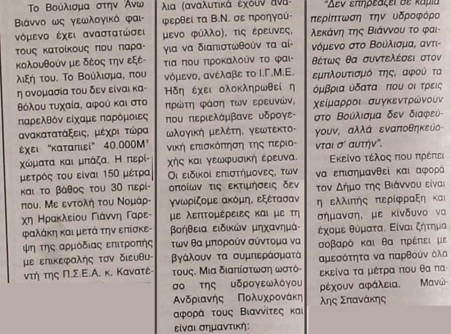 Στις αρχές του 2001, τέτοιες ημέρες δηλαδή πριν 19 χρόνια, πολλοί κάτοικοι της Άνω Βιάννου ήταν αναστατωμένοι από την εξέλιξη ενός γεωλογικού φαινομένου στην περιοχή.