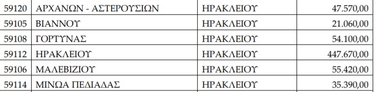 Τα ποσά που παίρνουν οι Δήμοι της ΠΕ Ηρακλείου: