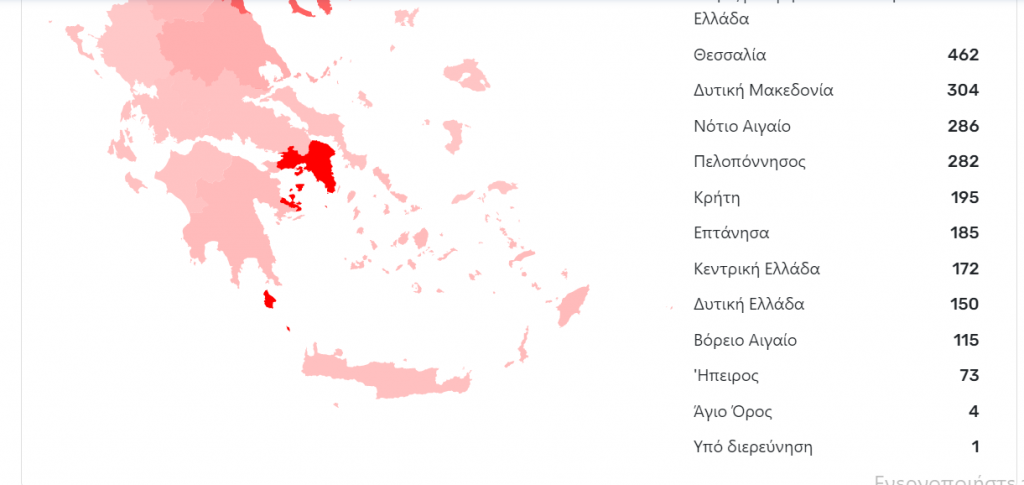 Ανεβαίνει ανησυχητικά το νησί στον σχετικό επίσημο πίνακα για την πορεία της πανδημίας στη χώρα.
