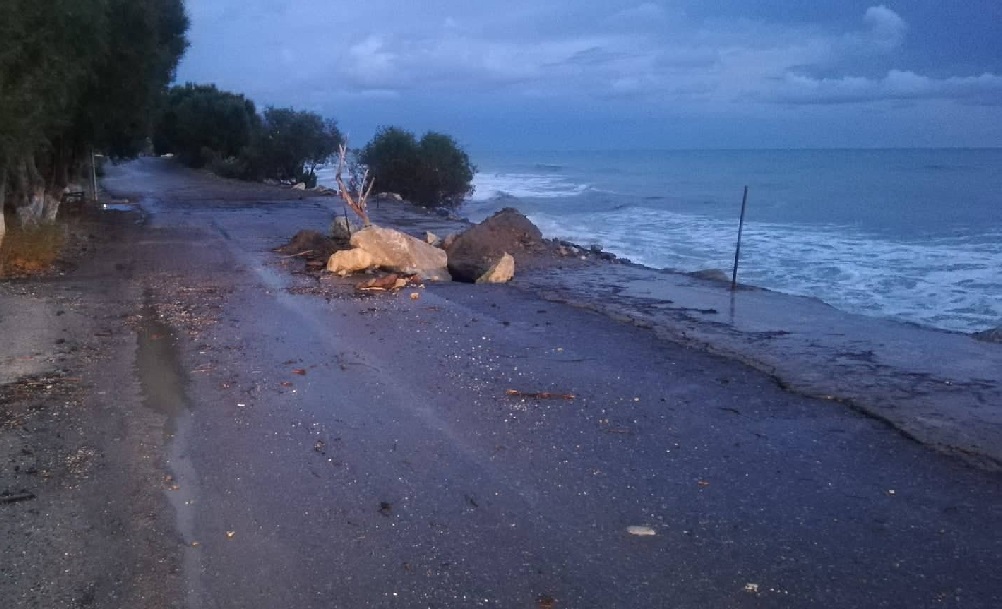 Κλειστή παραμένει η παραλιακή οδός του Κερατοκάμπου, από τους "Μαγατζέδες" και προς τα ανατολικά, λόγω των καταστροφών που προξένησε ο νοτιάς το βράδυ της Δευτέρας.