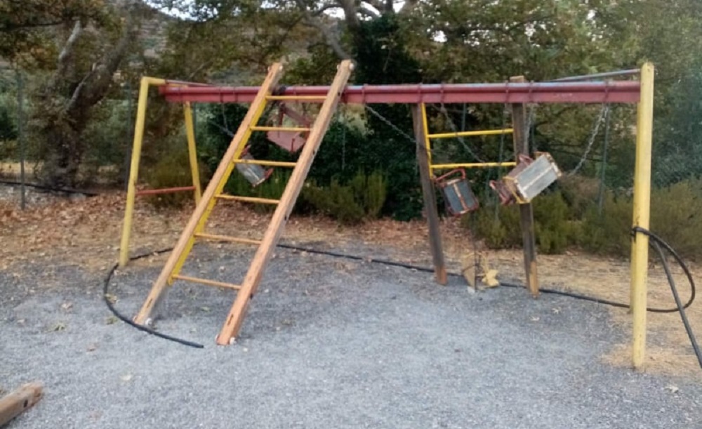Μετά τις καταγγελίες που δεχτήκαμε και αφορούν τις δολιοφθορές στο Βλαχάκειο Πνευματικό Κέντρο(δείτε εδώ), μας ήρθαν νέες καταγγελίες που τεκμηριώνονται από φωτογραφικό υλικό και αφορούν στην παιδική χαρά που βρίσκεται στη θέση Αγροκήπιο, νότια της κωμόπολης.
