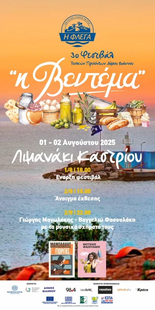 - Οι εκδηλώσεις ξεκινούν με τον Νίκο Ζωιδάκη, να ανεβαίνει στη σκηνή το Σάββατο 12 Ιουλίου, ώρα 22:00, για μια μοναδική κρητική βραδιά