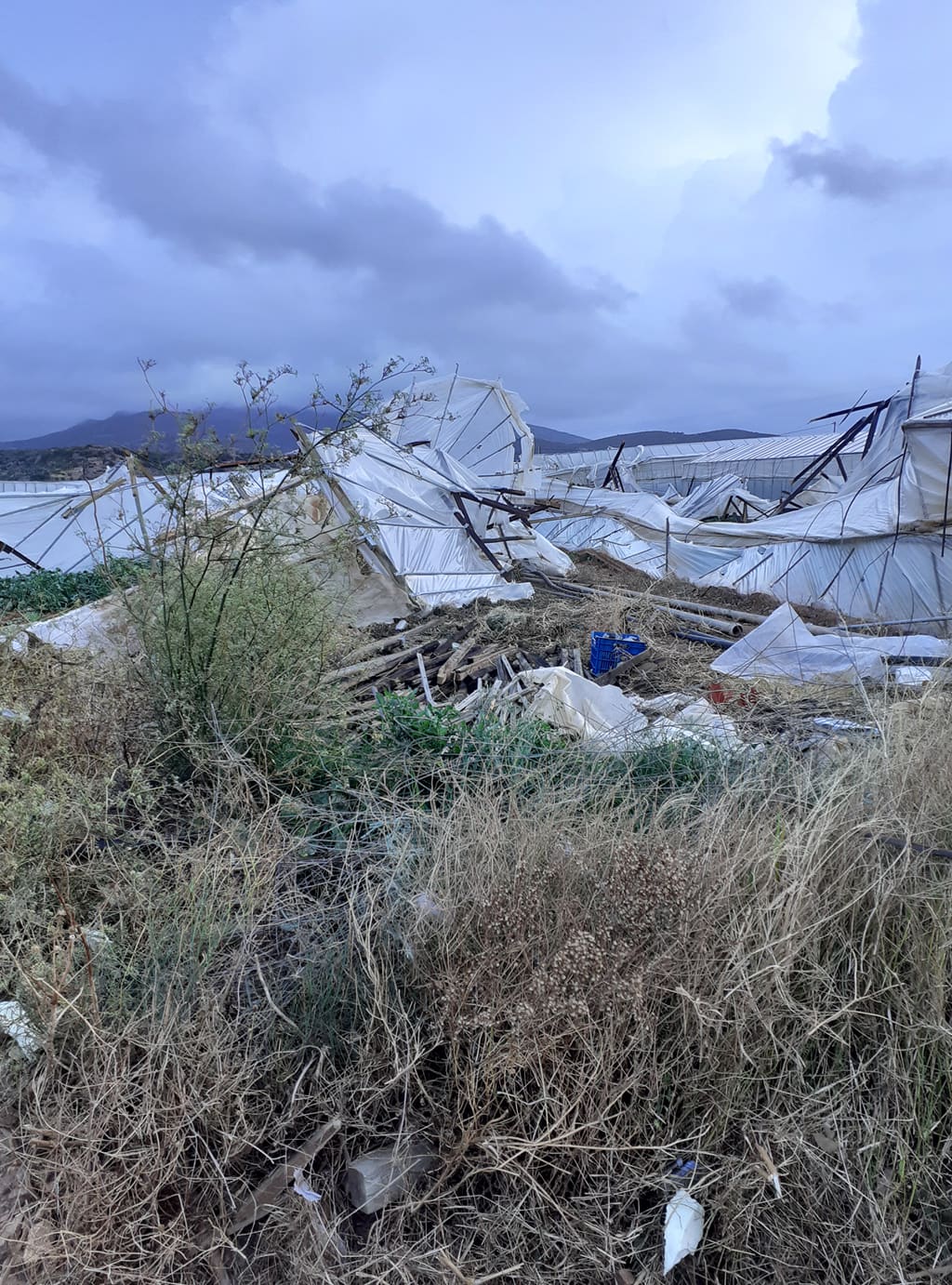 Όπως έγινε γνωστό οι καταστροφές που προκάλεσε κυρίως σε θερμοκήπια της περιοχής είναι μεγάλες.