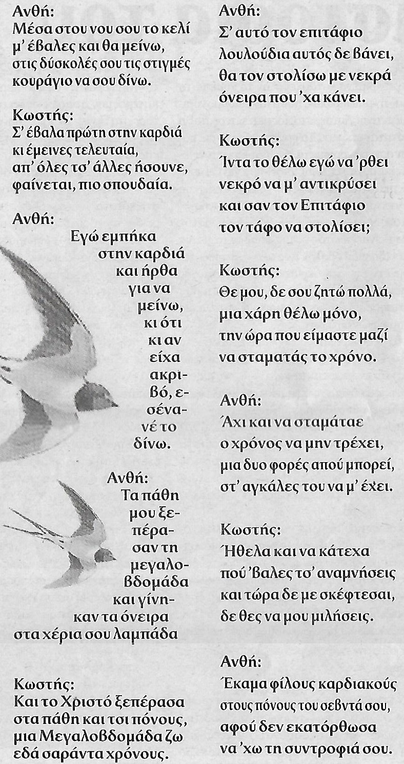 ...λέει ο Κωστής, για να απαντήσει η Ανθή...