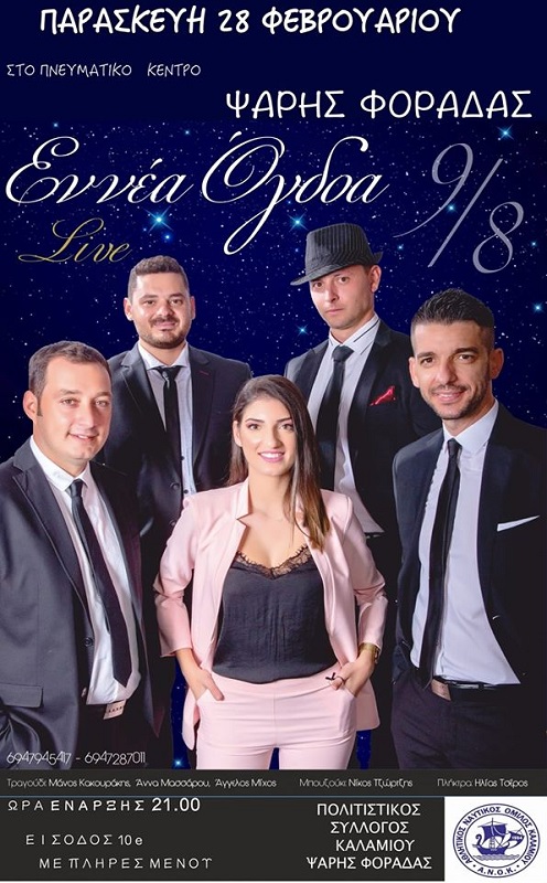 Έτσι, διοργανώνει ένα αποκριάτικο λαϊκό γλέντι, την Παρασκευή 9 Φεβρουαρίου με προσκεκλημένους τα μέλη του λαϊκού συγκροτήματος 9/8.