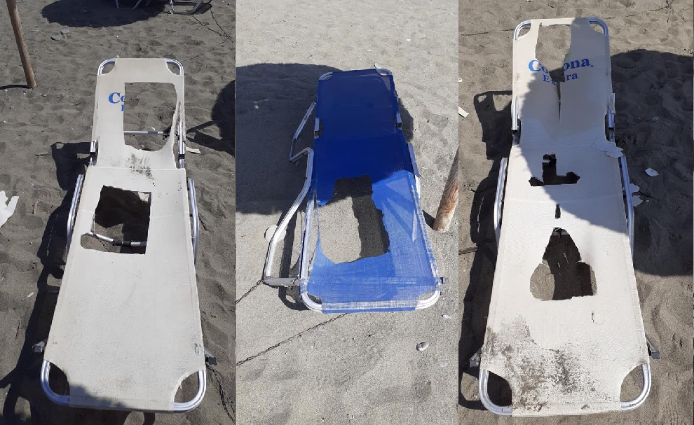 Όπως πληροφορηθήκαμε, περίπου 7 ξαπλώστρες έχουν βανδαλιστεί από κάποιον ή κάποιους ασυνείδητους, οι οποίοι "εκτονώθηκαν" μ'αυτόν τον πολύ άσχημο τρόπο.