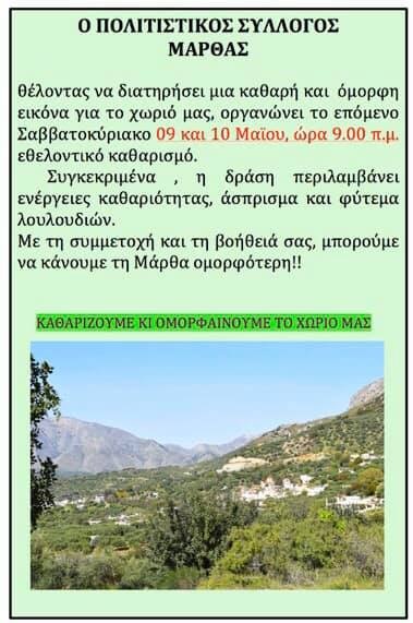 Ραντεβού προκειμένου να ομορφύνουν το χωριό τους έχουν δώσει το προσεχές Σαββατοκύριακο, οι Μαρθιανοί και οι Μαρθιανές.