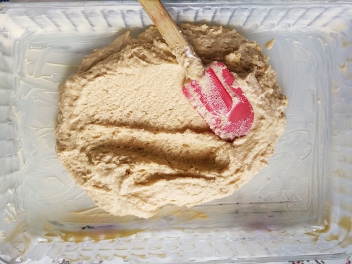 Απλώνουμε την χλιαρή κρέμα πάνω στη βάση η οποία είναι επίσης χλιαρή.