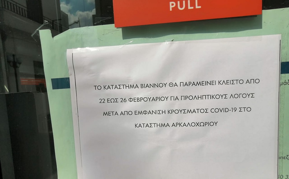 Σύμφωνα με σχετική ενημέρωση, το υποκατάστημα θα παραμείνει κλειστό όλη τη βδομάδα, δηλαδή μέχρι 26 Φεβρουαρίου, για προληπτικούς λόγους, καθώς εντοπίστηκε κρούσμα της covid-19 στο υποκατάστημα Αρκαλοχωρίου.