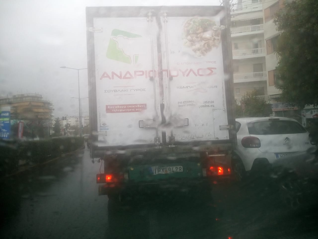 Στο πίσω μέρος των οχημάτων λοιπόν, όπως μπορείτε να δείτε σε φωτογραφία που μας έστειλε αναγνώστης του viannitika.gr, αναγράφεται το εξής: "Εάν οδηγώ επικίνδυνα, τηλεφωνήστε στο 210..." .