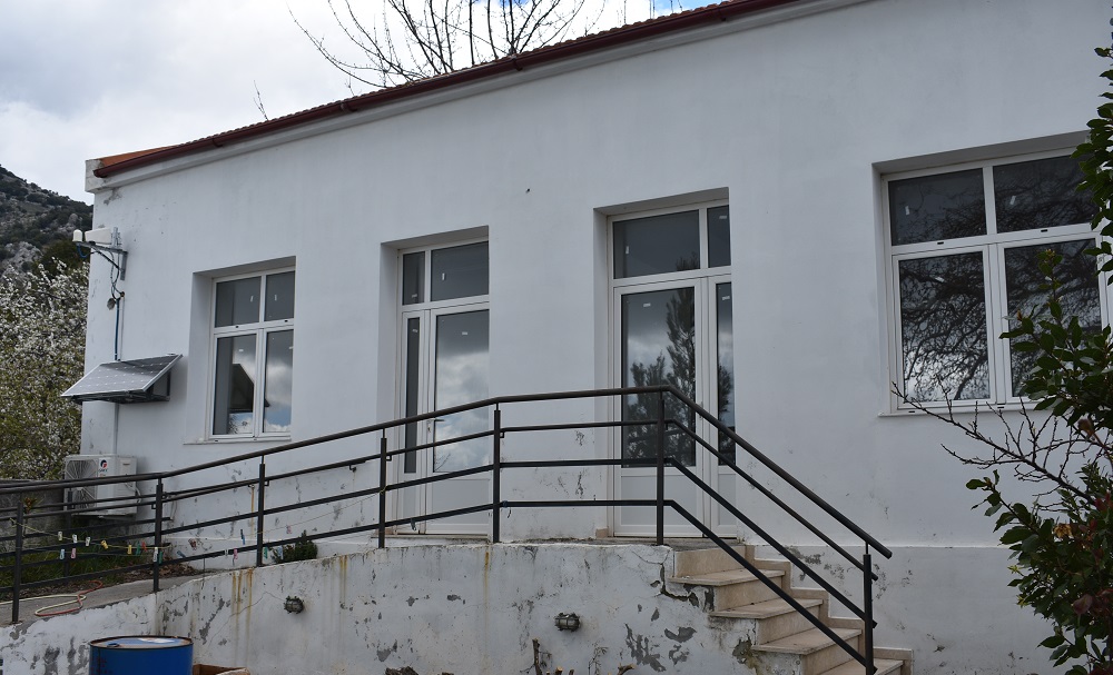 Το κτίριο του σχολείου που έκλεισε πριν 4 δεκαετίες, βρίσκεται σε μια πανέμορφη τοποθεσία στη βόρεια πλευρά του οικισμού.