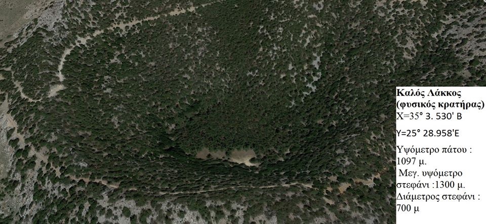 - Ο δεύτερος κρατήρας ονομάζεται «καλός λάκκος» γιατί σε αντίθεση με τον πρώτο είναι καταπράσινος γεμάτος δάση –πρίνους και πεύκα . Ακόμα και στον πυθμένα υπάρχει απίθανο δάσος με πεύκα και φυσικό γκαζόν ! Η υψομετρική διαφορά από τον πυθμένα στην άκρη του κρατήρα είναι κατά μέσο όρο 200 μ. και η μέση διάμετρος είναι 600 μ.