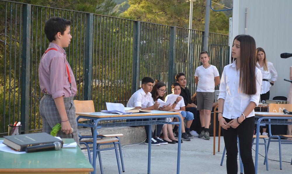 Τα παιδιά γιόρτασαν το τέλος της σχολικής χρονιάς, με την παράσταση "Όταν η λογοτεχνία συναντά το θέατρό", την οποία επιμελήθηκε η φιλόλογος του σχολείου, κ. Μαρία Πανταζή.