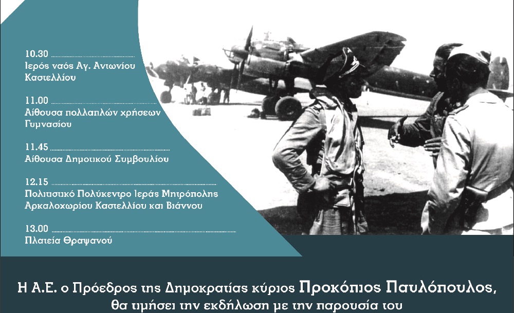 Την Κυριακή 9 Ιουνίου 2019 στις 10. 30 το πρωί, θα ξεκινήσουν οι εκδηλώσεις για τα 77 χρόνια από το α΄σαμποτάζ εναντίον των δυνάμεων του άξονα στην Ευρώπη(10 Ιουνίου 1942), το οποίο πραγματοποιήθηκε στο πολεμικό αεροδρόμιο Καστελλίου.