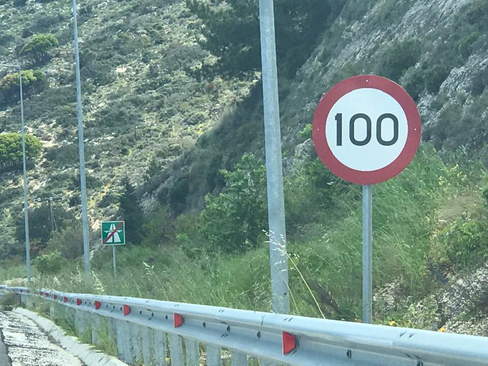 -Επικίνδυνο εξαιρετικά το όριο των 100 km λίγα μέτρα πριν το τέλος του διαχωριστικού στηθαίου προς δυσμάς και μάλιστα κάτω από την πινακίδα της αναγγελίας της διπλής κυκλοφορίας!