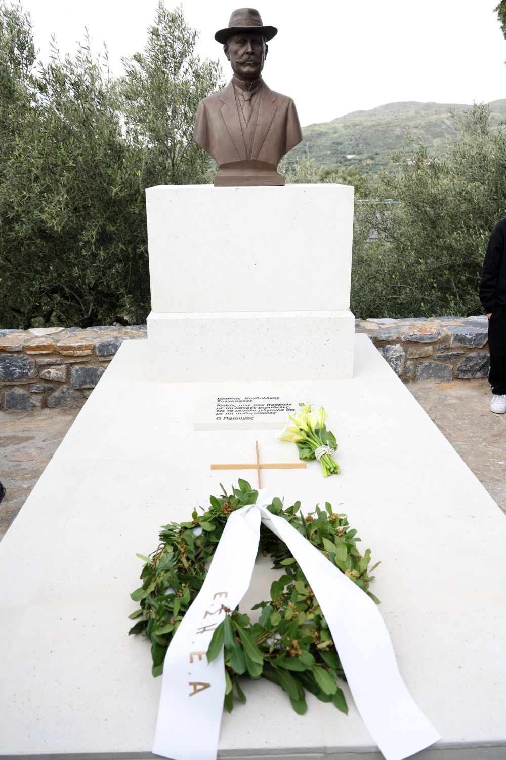 Είμαι ιδιαιτέρως ευτυχής, που τον «Διαβάτη» των ελληνικών γραμμάτων θα τον σκέπει για πάντα το χώμα της αγαπημένης του Βιάννου. Εκεί, στον Άγιο Κωνσταντίνο της Άνω Βιάννου, όπου και κατασκευάστηκε το ταφικό του μνημείο, το οποίο κοσμείται από την προτομή του, θα αγναντεύει τα αγαπημένα του Λιβάδια και τα υπερχιλιετή ελαιόδεντρα. Και ποιος ξέρει; Ίσως κάπου εκεί να αναπαύεται και η «Πρώτη Αγάπη»…