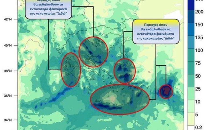 «Διδώ» ονομάζεται το νέο κύμα κακοκαιρίας που θα πλήξει τα επόμενα 24ωρα τη χώρα.