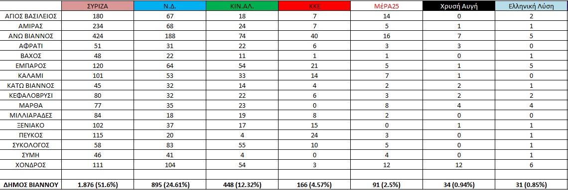 Έτσι ψήφισε ο Δήμος Βιάννου