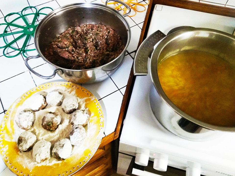 Πλάθουμε σε μπαλίτσες τον κιμά (όσο ένα καρύδι), περνάμε τις μπαλίτσες από αλεύρι και τις σοτάρουμε ελαφρά ,λίγες-λίγες, για να μη πέσει η θερμοκρασία του λαδιού κι αρχίσουν να "ξερνούν" τους χυμούς τους.