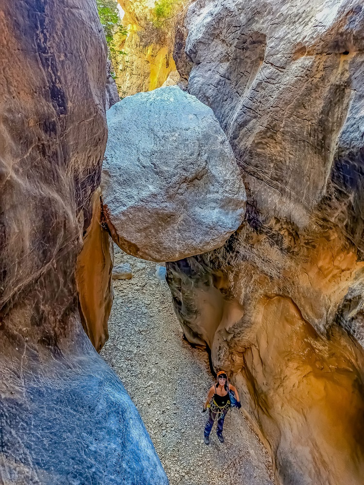 Στη φωτογραφία του εκπαιδευτή Φαραγγιών canyon EFΗ, Μάνου Πετράκη, φαίνεται μια τεράστια λίθινη σφαίρα η οποία βρίσκεται στο πανέμορφο φαράγγι της Παναγίας Κεραλιμενιώτισσας.