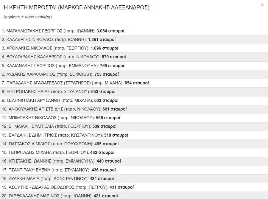 Οι 20 πρώτοι στην Περιφερειακή Ενότητα Ηρακλείου από τον συνδυασμό του Αλέξανδρου Μαρκογιαννάκη “Η Κρήτη μπροστά”: