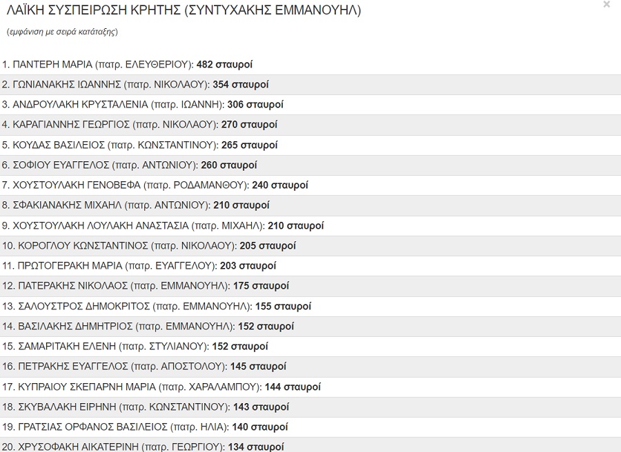 Οι 20 πρώτοι στην Περιφερειακή Ενότητα Ηρακλείου από τον συνδυασμό του Μανώλη Συντυχάκη “Λαϊκή Συσπείρωση Κρήτης”: