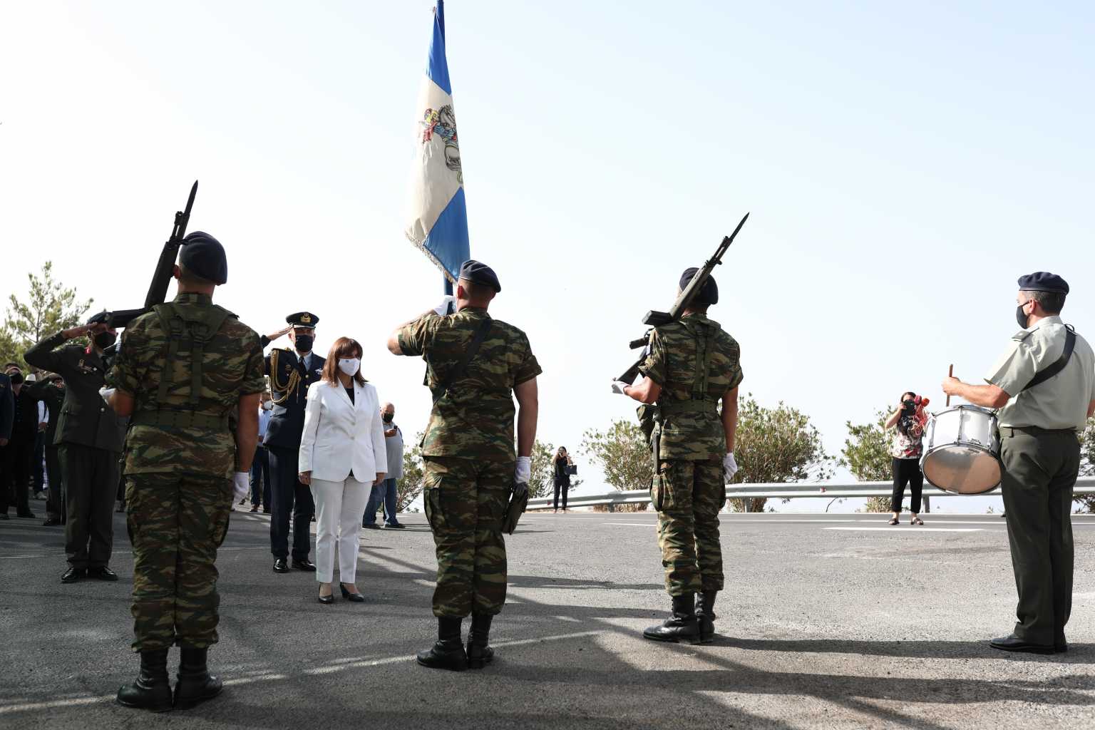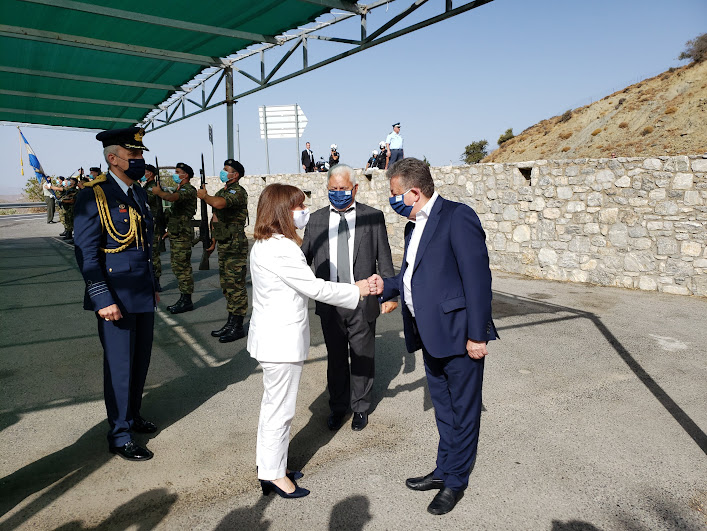 Στο χώρο του μνημείου την Πρόεδρο της Δημοκρατίας Αικατερίνη Σακελλαροπούλου υποδέχθηκαν ο Περιφερειάρχης Κρήτης Σταύρος Αρναουτάκης και ο Δήμαρχος Βιάννου Μηνάς Σταυρακάκης.