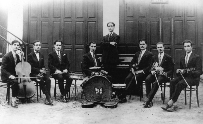 Ο Στάθης Μάστορας (όρθιος στο κέντρο) με την ορχήστρα του στην Αλεξάνδρεια.