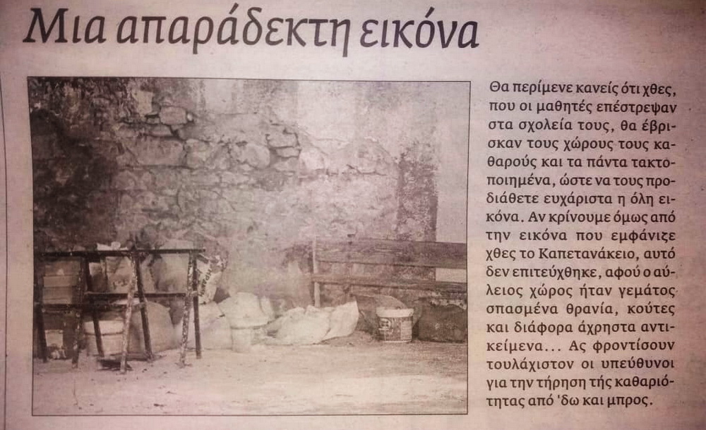 Κάποια από τα παιδιά που φοιτούν στο Καπετανάκειο, έχουν γεννηθεί μετά το 2004. Είναι δηλαδή νεότερα, από το φύλλο της εφημερίδας στο οποίο θα ξεφυλλίσουμε σήμερα και σίγουρα είναι νεότερα από τα... προβλήματα του σχολείου τους!