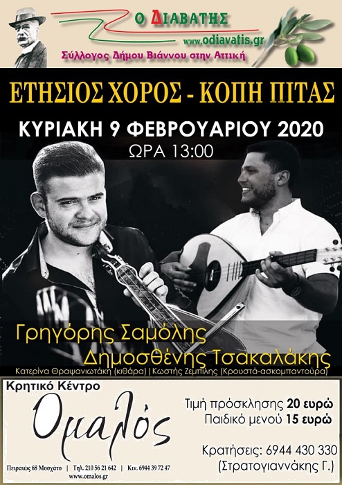Η εκδήλωση, στην οποία θα πραγματοποιηθεί και η κοπή της πρωτοχρονιάτικης πίτας του Συλλόγου, θα γίνει την Κυριακή 9 Φεβρουαρίου στις 13:00, στο κέντρο "Ομαλός".
