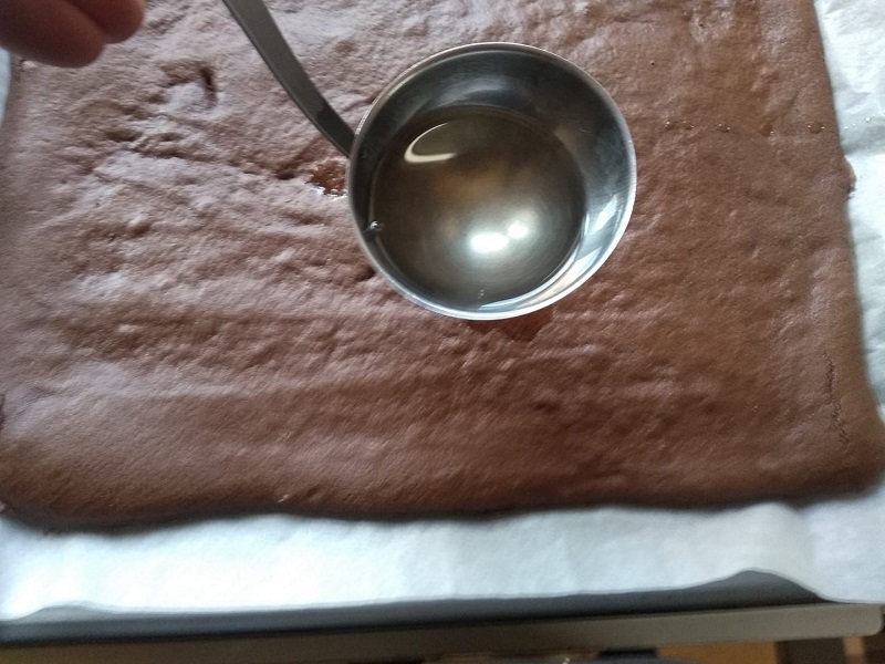 Το αφήνουμε για πέντε λεπτά να πιεί όλο το σιρόπι και το σκεπάζουμε με ένα κομμάτι αντικολλητικό χαρτί.