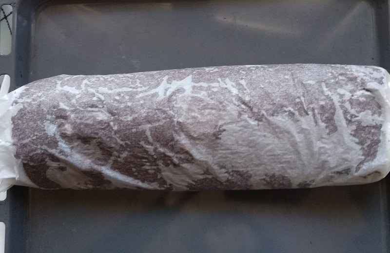 Τυλίγουμε σε ρολό με τη βοήθεια του κάτω χαρτιού ανασηκώνοντάς το.