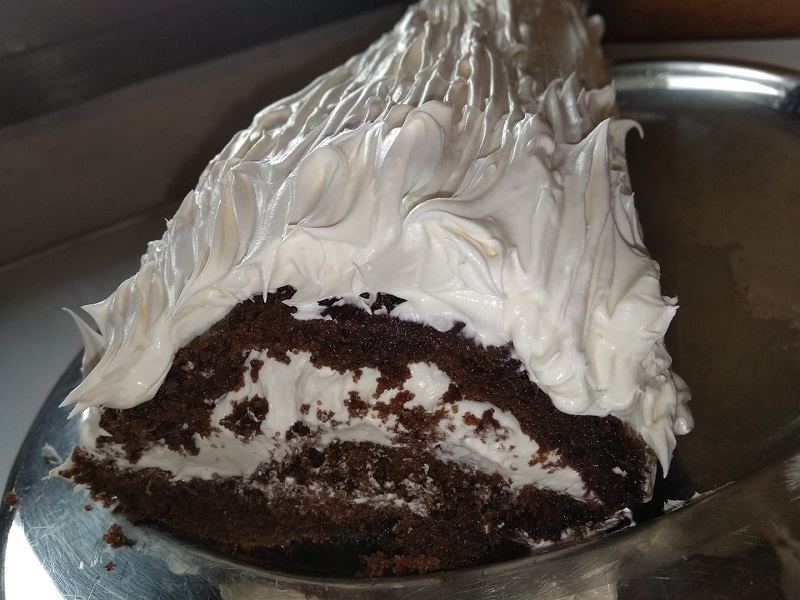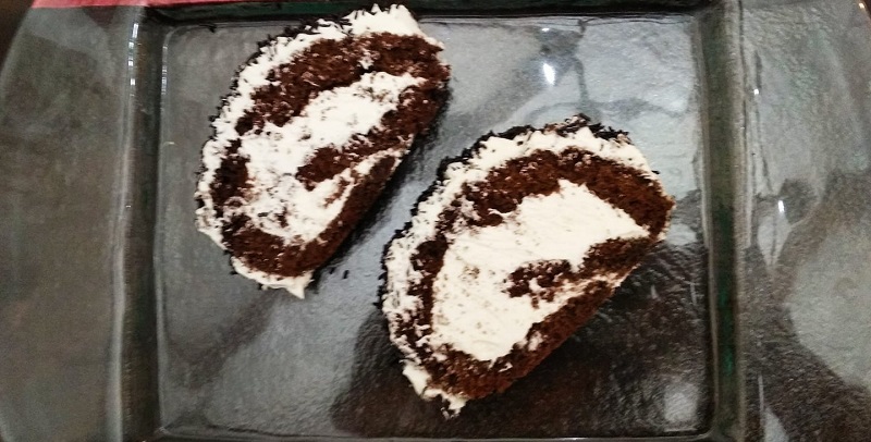 2) Μην επιχειρήσετε να χρησιμοποιήσετε άλλου είδους κρέμα στο συγκεκριμένο παντεσπάνι. Είναι πολύ αφράτο και μη ανθεκτικό (λόγω σιροπιού ) και δεν θα τυλιχτεί. Θα σπάσει.