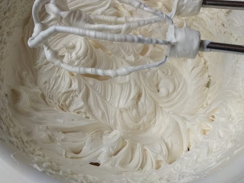 Ετοιμάζουμε τη σαντιγί (λεπτομέρειες στις ΣΗΜΕΙΩΣΕΙΣ) και τη βάζουμε στο ψυγείο.