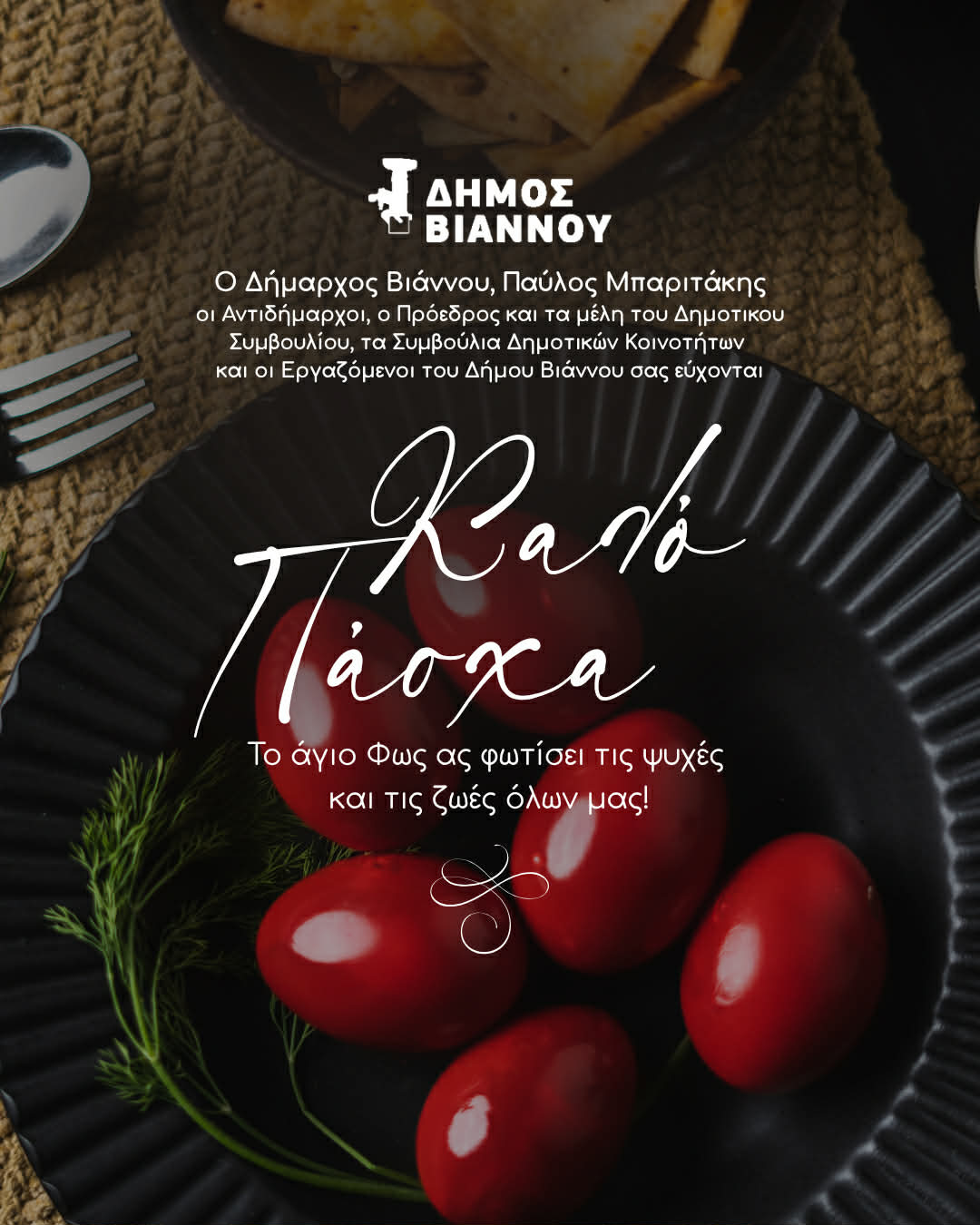 Το μήνυμα του Δημάρχου Βιάννου κ. Παύλου Μπαριτάκη για το Πάσχα είναι το ακόλουθο: