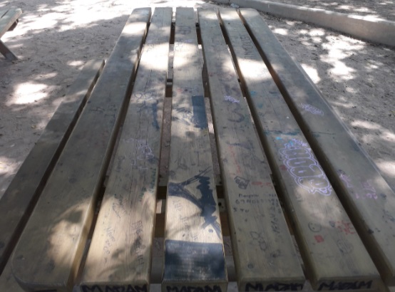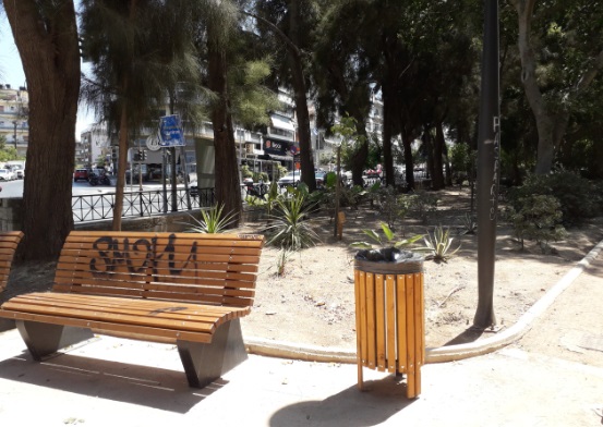 Πάρκο Γεωργιάδη, Γκράφιτι σε παγκάκι και κολώνα φωτισμού