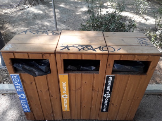 Γκράφιτι σε ξύλινο Κάδο ανακύκλωσης