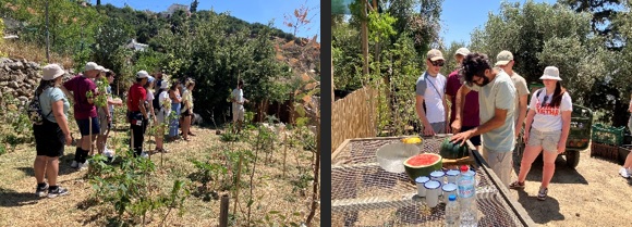 Επίσκεψη σε τοπικό ελαιώνα, όπου οι συμμετέχοντες ενημερώθηκαν για τη διαδικασία της καλλιέργειας και του παραδοσιακού μαζέματος της ελιάς, αποκτώντας βιωματική γνώση για την παραγωγή του κρητικού ελαιολάδου.