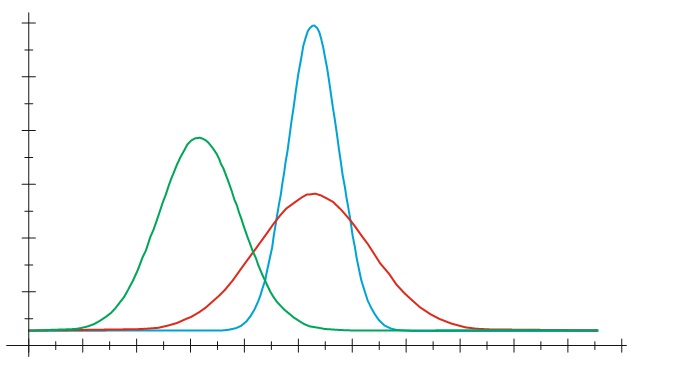 Ανάλογα με την επιλογή των σταθερών μ και σ η μαθηματική σχέση παρίσταται γραφικά όπως φαίνεται στο παρακάτω γράφημα.