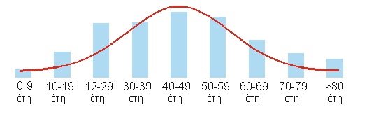 Επίκαιρο παράδειγμα «κανονικής κατανομής» είναι το ιστόγραμμα, των μολυσμένων από κορωνοϊό με ηλικιακή κατάταξη, όπως παρουσιάζεται από τον ΕΟΔΥ.