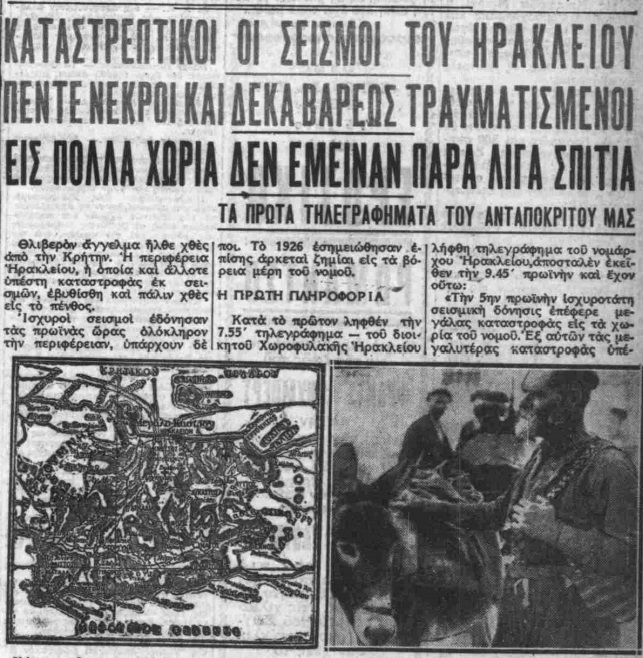 "Θλιβερόν άγγελμα ήλθε χθες από την Κρήτην", γράφει η εφημερίδα "Ακρόπολις" για τον τρομερό σεισμό του 1935.