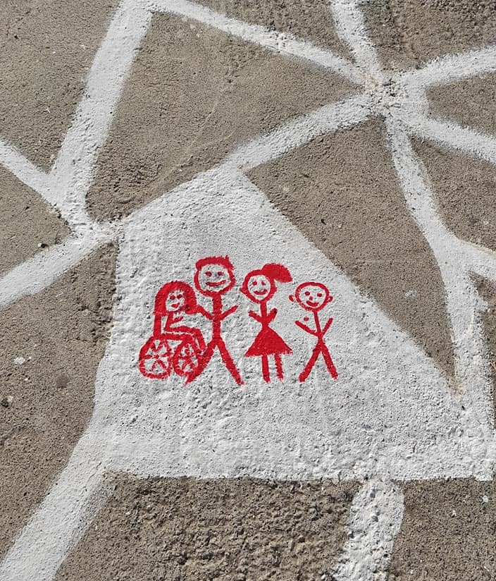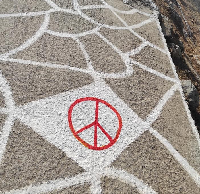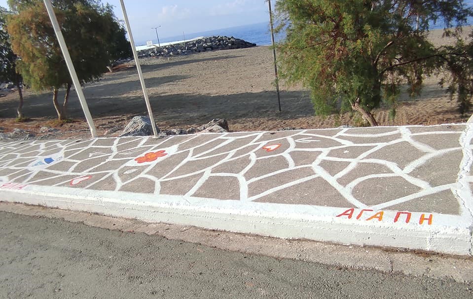 Έναν λαμπερό ...ήλιο, πολύχρωμα λουλούδια, το σήμα της ειρήνης, αλλά και μικρά παιδιά να παίζουν μαζί με τη φίλη τους στο αμαξίδιο, θα συναντήσετε όταν φτάσετε στην Άρβη...