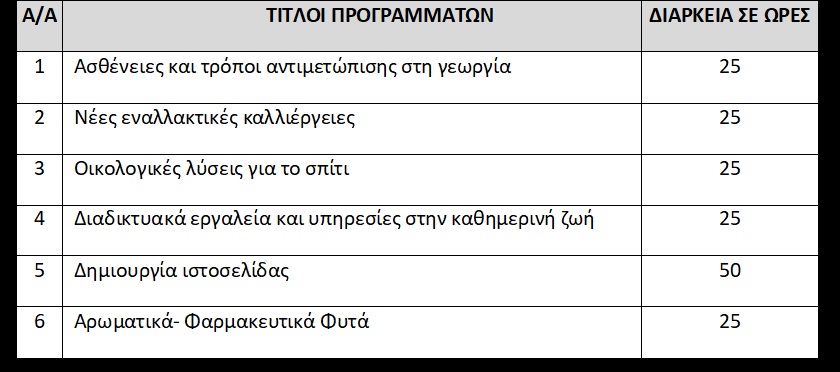 Α/Α ΤΙΤΛΟΙ ΠΡΟΓΡΑΜΜΑΤΩΝ ΔΙΑΡΚΕΙΑ ΣΕ ΩΡΕΣ
