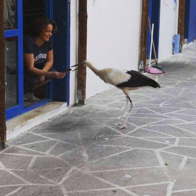 Τον πελαργό, εντόπισαν και φρόντισαν με ιδιαίτερη στοργή, οι κυρίες Στεφανία Κονσολάκη και Εύα Πετράκη, οι οποίες μάλιστα συνέβαλλαν στο να καθαριστεί το δαχτυλίδι αναγνώρισης που έφερε το πουλί στο πόδι του.