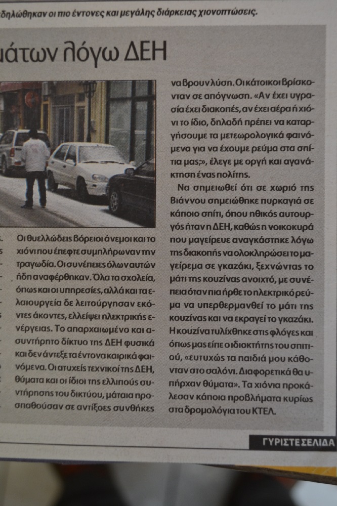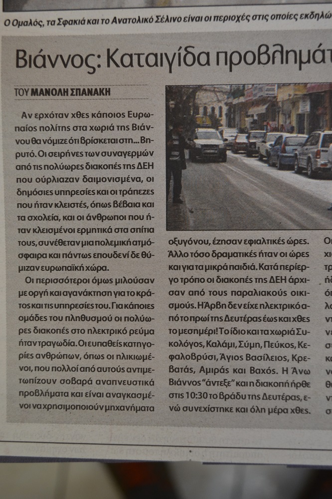 Στο δικό μας "χθες" λοιπόν, λιγότερο από μια ώρα χιονόπτωσης ήταν αρκετή για να αφήσει το Δήμο Βιάννου χωρίς ρεύμα για μια ολόκληρη νύχτα.