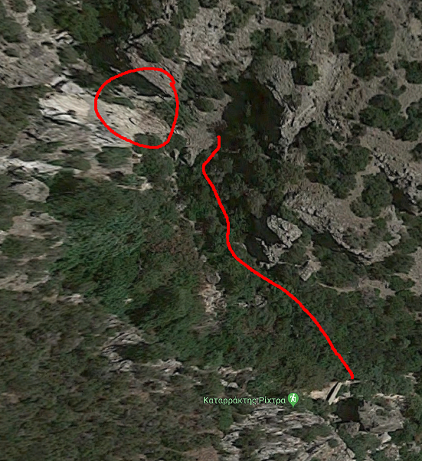 Με αφορμή το σχόλιο σας(διαβάστε εδώ) για το μονοπάτι που οδηγεί στην Ρίχτρα, και επειδή είμαι μία από τις περιπτώσεις που περιπλανήθηκαν αριστερά και δεξιά του ποταμού, μέσα σε χωράφια, ελιές και χαρουπιές, πηγαίνοντας γύρω από περιφράξεις για να μη με πουν και καταπατητή... και τελικά βρήκα τον δρόμο για την Ρίχτρα με την βοήθεια του ήχου, σας στέλνω την διαδρομή που ακολούθησα και ένα link από τον Καταρράκτη της Ρίχτρας στον Κερατόκαμπο. Η διαδρομή πάντως στα τελευταία 100 μέτρα είναι λίγο δύσκολη καθώς παρά το γεγονός ότι υπάρχει ένα μικρό μονοπάτι, αυτό σε οδηγεί σε μεγάλους βράχους και πολύ πυκνή βλάστηση και χρειάζεται προσοχή για να μην γίνει κάποιο ατύχημα.