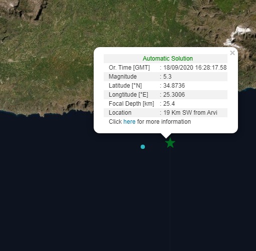Σεισμός νοτίως της Αρβης πριν 7 λεπτά με πρώτη εκτίμηση μεγέθους από το Γεωδυναμικό Ινστιτούτο Αθηνών 5,3 Ρίχτερ!