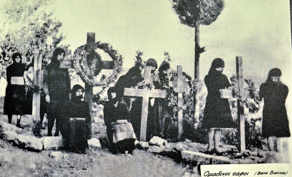 Εικόνα 2. Ομαδικοί Τάφοι εκτελεσθέντων την 14η/09/1943 στον προαύλιο της εκκλησίας της Μεταμόρφωσης του Σωτήρα και τότε Δημοτικού Σχολείου Βαχού (φωτ. Κ. Κουτουλάκη).